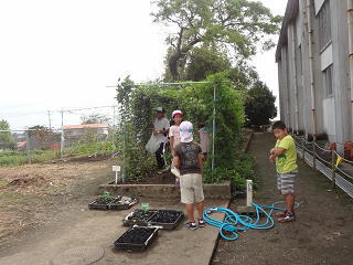 校内はたくさんの木の葉等が散乱・・・。6年生は登校するとすぐに朝のボランティア活動で懸命に清掃活動を行っていました。