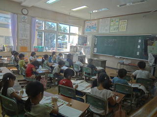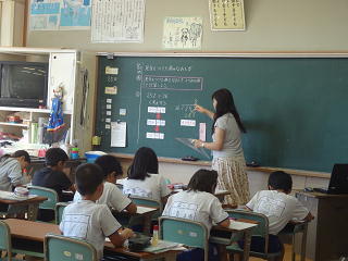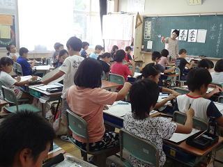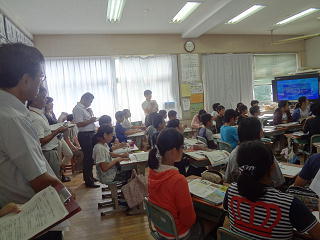 先週、本校で研究授業が行われました。新富町の先生方が参加され、熱心に参観されていました。