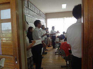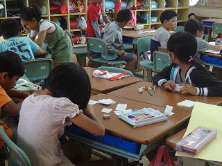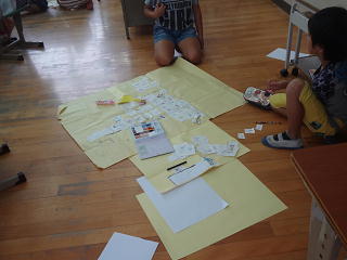 問題を解いて、先生のところに順番に並んでいました。一人ずつ丁寧に見ていただき、子ども達はうれしそうでした。