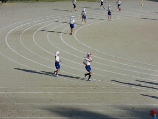 晴天に恵まれて、予定どおり開催されました。校長室前の掲示板でも子供たちが懸命に走ってますね。