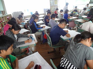 思考力が求められる問題!子供たちは、先生の説明を聞きもらすまいと懸命に取り組んでいました。