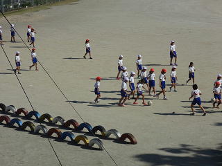 子供たちは、爽やかな天気の中、元気に登校!28日(日)に運動会をひかえ、思い切り練習ができます。