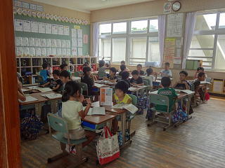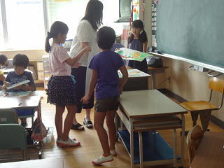 二人で向かい合っての学習の様子です。聞いてくれるお友達がいると、楽しさも増すようです。