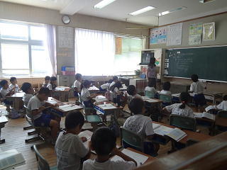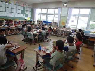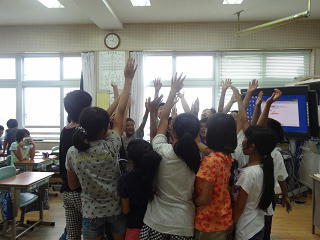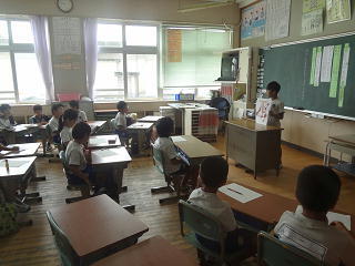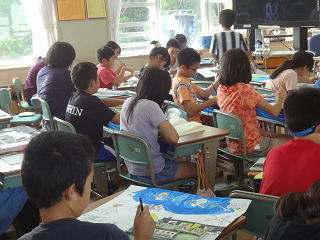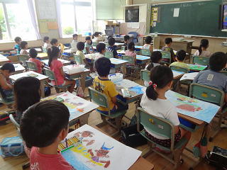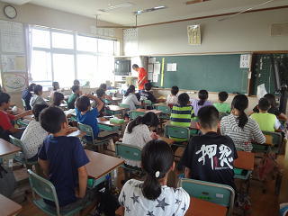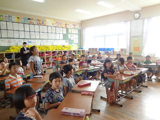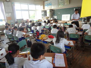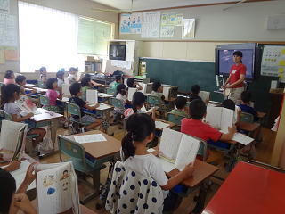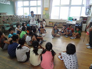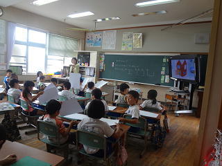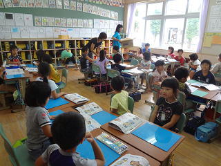 イタリアの話や、ロミト先生の夏休みの話を聞いたり、英語の歌を歌ったりして、楽しく学習することができました。