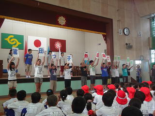 みんなの前で決意を述べました。意気込みのあるあいさつでした。