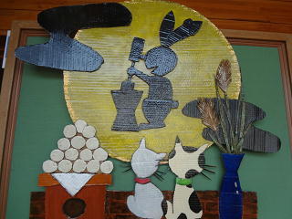 日本ならではの十五夜・・・。お供え物をして、みんなで楽しんでいますね。