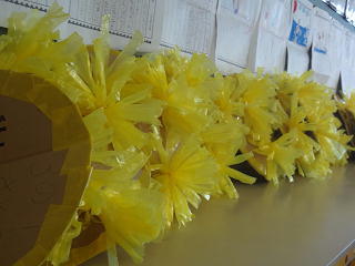 手作りの花がさが完成!鈴もついています。運動会で花咲くことでしょうね。