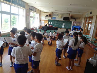 運動会に向けて歌の練習を頑張っています。