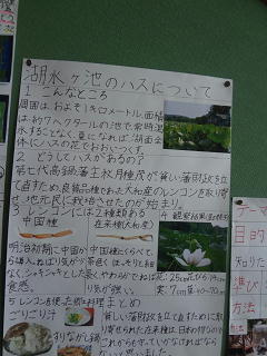 夏休みに制作した自由研究が掲げられています。力作ばかりです。