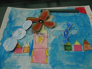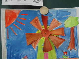 素敵な作品が出来上がりましたよ。風車が夢の風をつかまえて、回っているようですね。