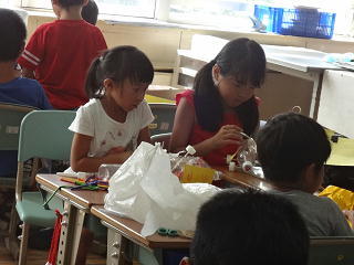 紙粘土で、なにやら制作!なにができるのでしょうか?子供たちは、先生の説明に耳を傾けていましたよ。