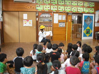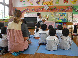 園児たちは、興味しんしんの様子で聞き入っていました。6年生は練習の成果を生かし、わかりやすい読み聞かせを行ったようです。