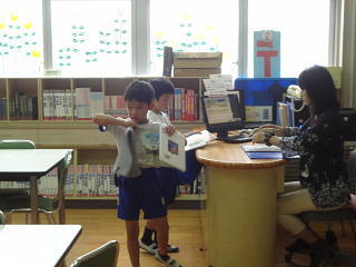 お気に入りのマイバックをもって図書館へ・・・。そしてお気に入りの本を選んでいました。