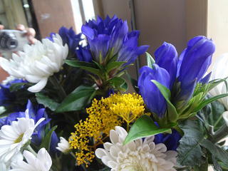 こんなに素敵な秋の花が届けられました。職員は、しばし心を和ませていましたよ。