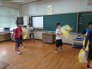 空気を袋につかまえて・・・・の学習でしたよ。楽しそうでした。