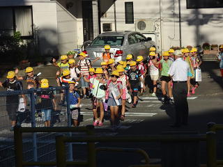 子供たちの登校を見守る青パト登場!みんな元気にあいさつを交わしていました。