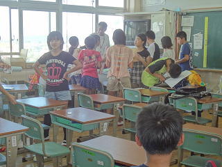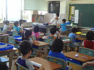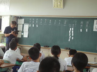 小川先生が講師になって、外国語活動のアクティビティをしました。