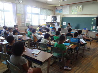 どの学年も健康の状態を先生に報告したり、夏休みの出来事を話したり等していましたよ。