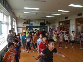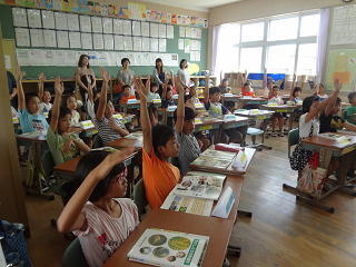 そして「今、もういつでも2学期が始まってもよい人?」の投げかけにたくさんの子供たちが、はりきって手を挙げていました。