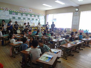 みんなそろってのあいさつ・・・、そして自由研究等を提出するなど、あわただしい時間が流れていました。
