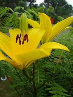 暑さに負けずに花々が咲いています。青い空にはフェニックスが似合いますね。