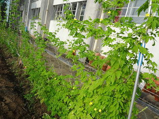 講堂横はヘチマのカーテン・・・・涼しげです。