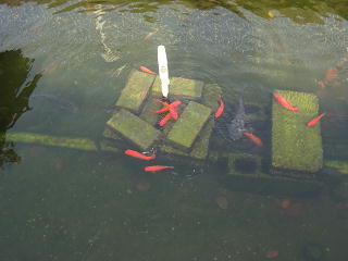 ゆうゆうと泳いでいました。噴水から流れてくる冷たい水の周りに集まっています。