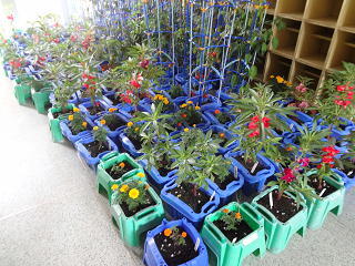 1、2、3年生は自分たちの鉢を避難させましたよ。