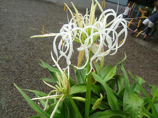 宮崎県の花でもあるはまゆう・・・・。家庭科室の前で咲きました。