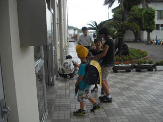 サマースクールが始まりました。子供たちが続々とやってきました。友達を見つけて嬉しそうです。