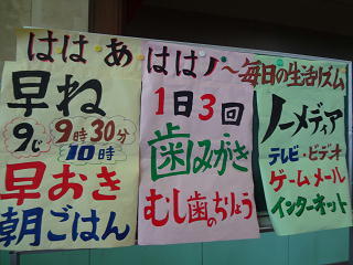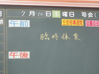 終業式で健康についてのお話の中でむし歯の治療の大切さにも触れられました。児童のみなさんは、歯に限らず、目や耳等、必要な治療は夏休み期間中に行いましょう。保護者の皆様もご家庭で子供たちに治療の大切についてお話しください。