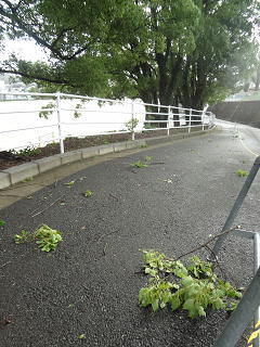 爽やかな風が吹いていました。みんな、いつものように元気に登校!そして6年生は、進んで台風の去った後の落ち葉等のそうじを行っていました。