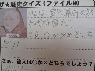 いろいろなタイプのクイズが掲げられています。挑戦しにくる子供たちがたくさん見受けられますよ。