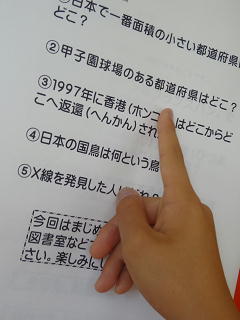 校内探検の様子をまとめて、自分の言葉で発表・・・・。実物投影機で自分のノートを映しての発表を行いましたよ。