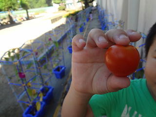 「大きなトマトがとれたよー」「つるがお隣の人のにまいていったよ・・・」