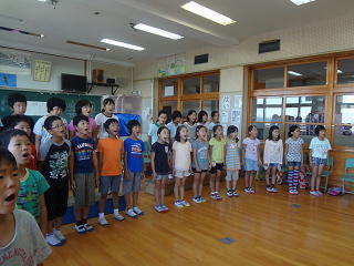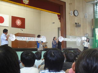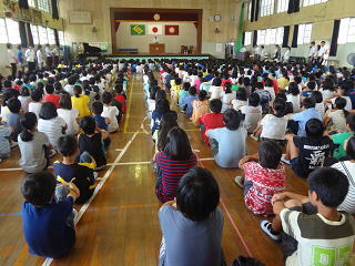 校長先生は、「新しい自分と出会いましょう・・・」と語られました。子供たちは、夏休みを迎える心をいっぱいに開き、じっと耳を傾け、言葉の一つ一つを受け止めていたようです。