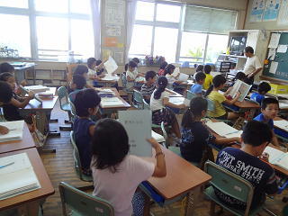 5年生の外国語活動(英語)はイタリアから来られたロミト先生と一緒にがんばっています。英語だけでなくイタリア語の単語も時々紹介してくださいます。子供達はロミト先生との時間を楽しみにしています。