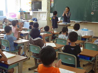 ロミト先生によるやさしく、リズム感のある活動が展開されました。子供たちはやる気まんまんでした。