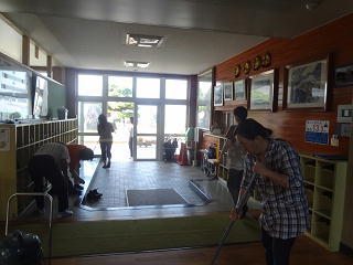 体育委員会のみなさんが、台風で飛んできた木切れや葉っぱ等、プールサイドの掃除を行ってくれました。