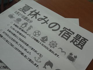 たくさんのプリントや課題一覧が配られました。特に「夏休みのきまり」については、大切な所に線を引くなど、丁寧な指導が行われていました。
