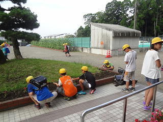 まずは、育てているアサガオの水やりから・・・。草を抜いたりもして・・・、みんな大事に育てていますよ。