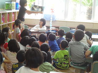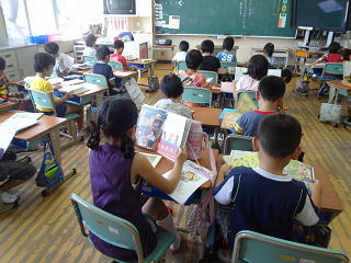 朝の時間に読み聞かせに行きました。前の日に準備・練習したかいあって、みんなに喜んでもらえたそうです。やりがいのある活動・・・・。6年生は感じているようです。