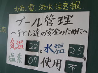雨はやみましたが、プール実施については条件を満たさずに中止になりました。