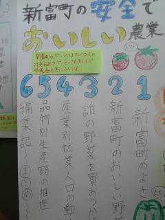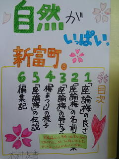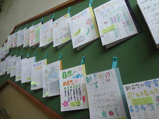 新富町のパンフレット・リーフレットを作成しました。自分たちの暮らす町のよさを世界にアピールするための工夫がたくさん見られますよ!中央階段に掲示してあります。