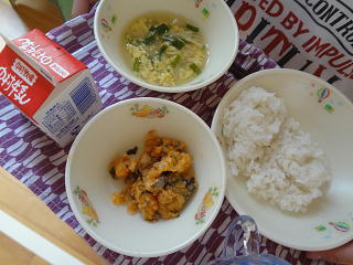 6年生が1年生をしっかりとサポートして、給食の準備を行っています。1年生は静かに待っていましたよ。・・・そしてみんなで美味しくいただいていました。