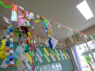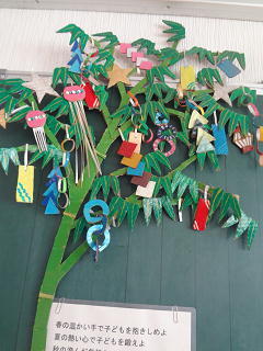 「お花やさんになりたいな・・」「だんご虫をつかまえられるようになりたいな・・・」それぞれの願いを短冊に記しました。