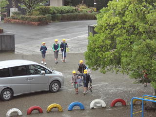 本日も職員が地域に出て下校の様子を見届けたり、指導したりしました。校内放送でも雨の日の歩行や横断歩道の渡り方等について注意がありました。