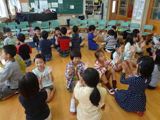 先生の笑顔とリズムにのって読み方の練習!楽しそうでした。