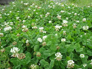 幸せを呼ぶクローバーの花がみんなを見守っています。