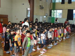 入学して初めての参観日!保護者の方々は心配そうに子供たちを見守られていました。子供たちは、はじめは緊張していましたが・・・だんだんいつものように活発に活動していました。授業が終わると、保護者の方を見て嬉しそうに合図を送ったり、手をふったりしていました。